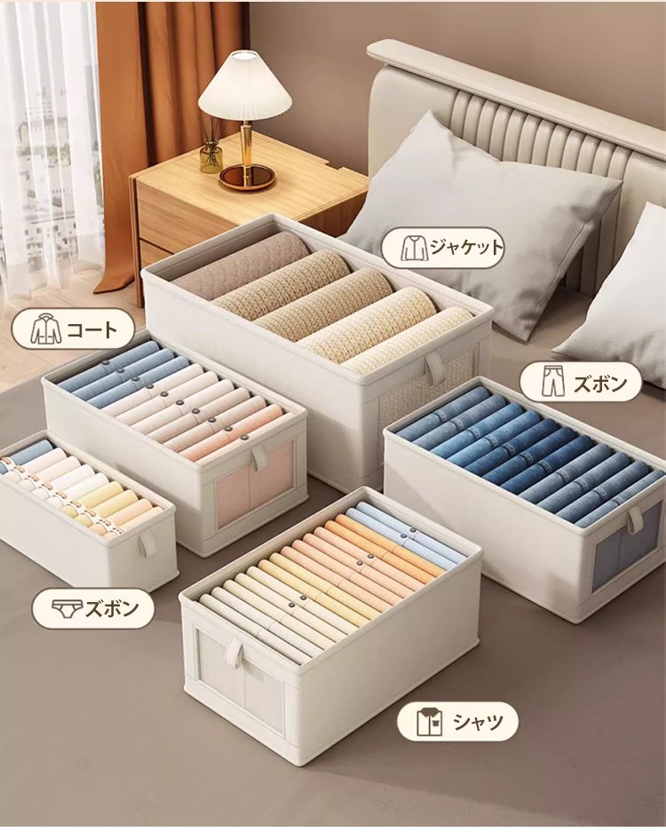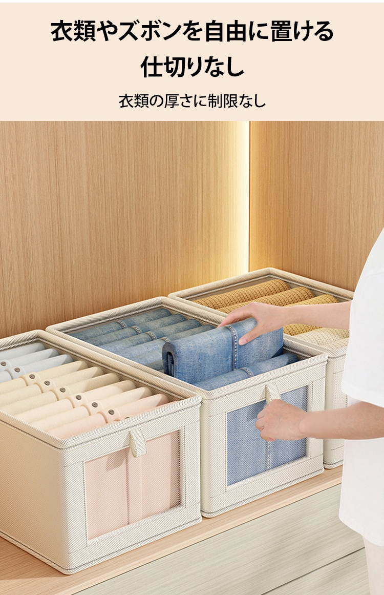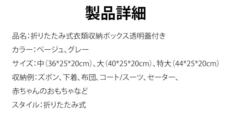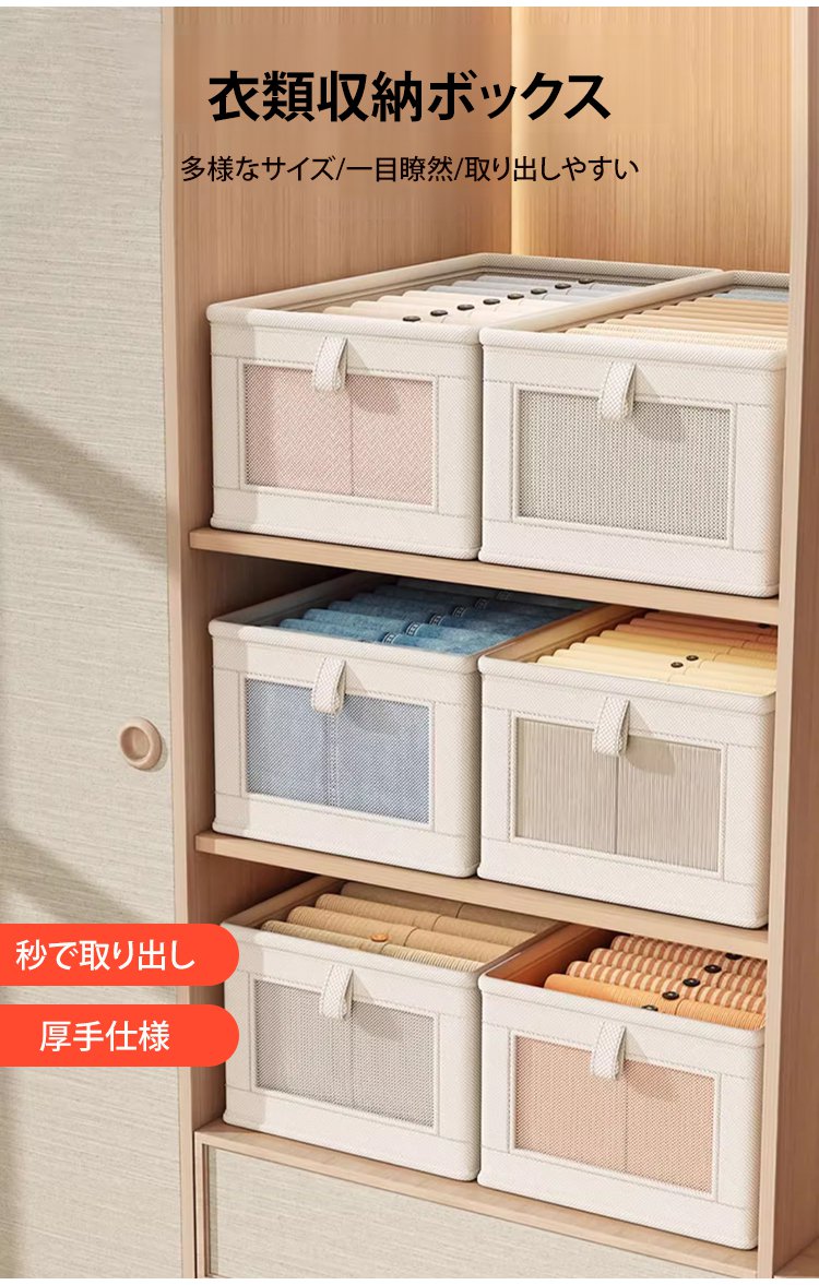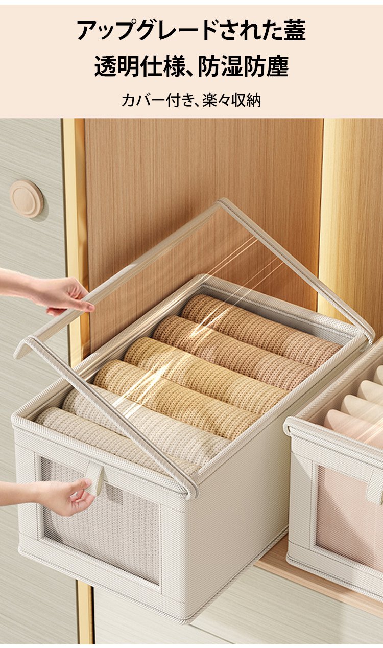 折りたたみ式衣類収納ボックス透明蓋付き